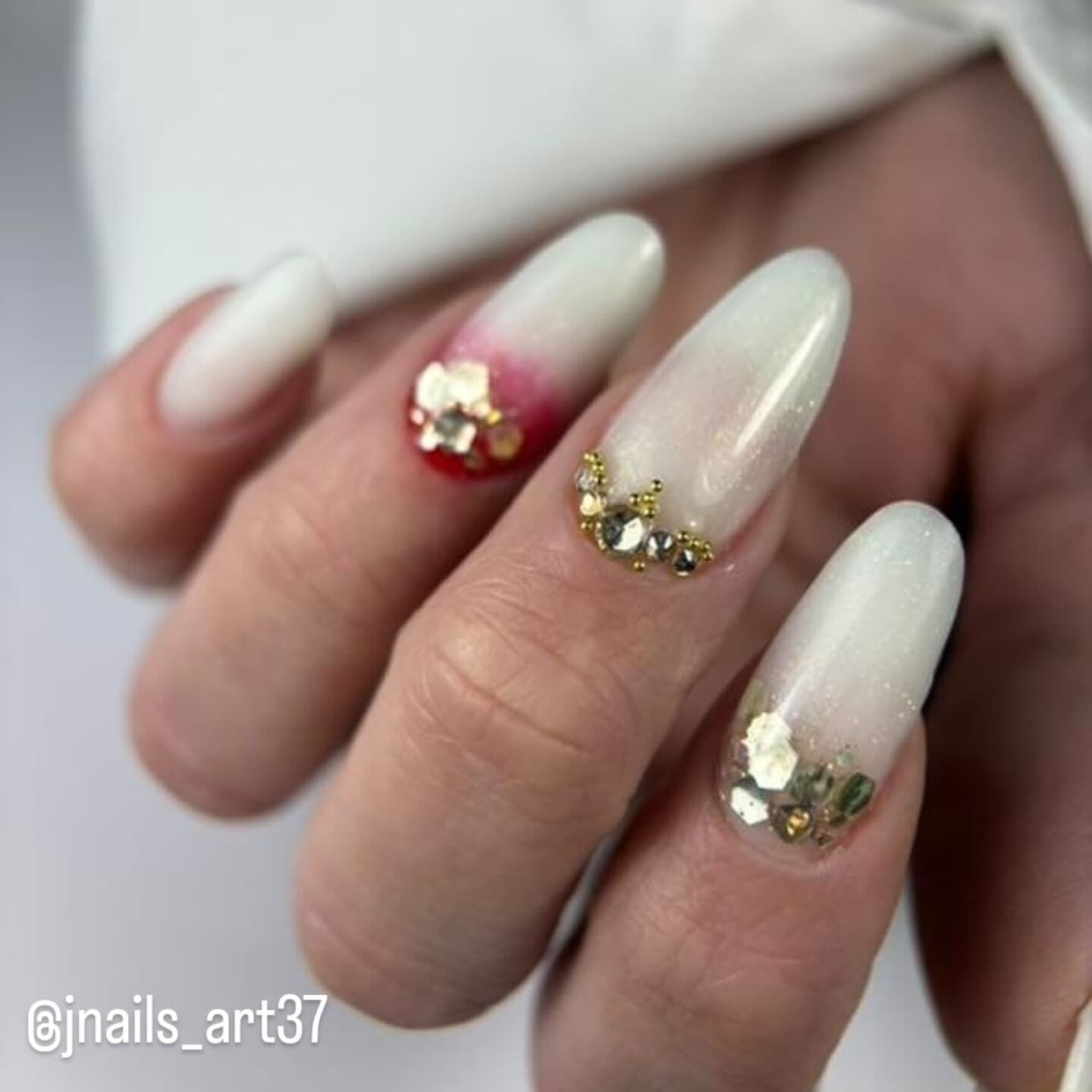 Tels que, des incrustations de paillettes perle ou strass nacrés.